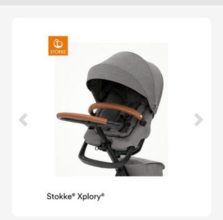 Passeggino Stokke Xplory in colore grigio. Design moderno e funzionale. Include seggiolino auto e navicella. Ruote adatte a tutti i terreni.