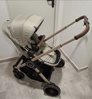 Condizione pari al nuovo. Colore nero con dettagli in pelle marrone, facile da pulire. È costituito da un seggiolino auto con sistema di presa a cintura, con cuscino adattatore per neonati. Custodia rigida con tappetino e sacco. Passeggino con sacco per il freddo, può essere posizionato avanti e indietro. Inoltre i suoi due materiali plastici per la pioggia. Molto elegante!