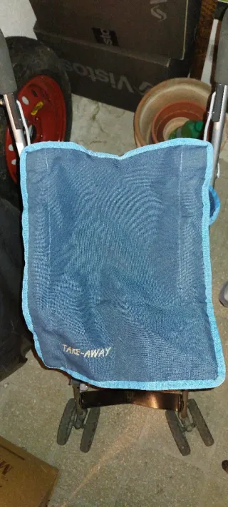 Pratico passeggino leggero, ideale per gli spostamenti. - Struttura in metallo. - Seduta in tessuto blu. - Cinture di sicurezza. - Para sole - Non reclinabile