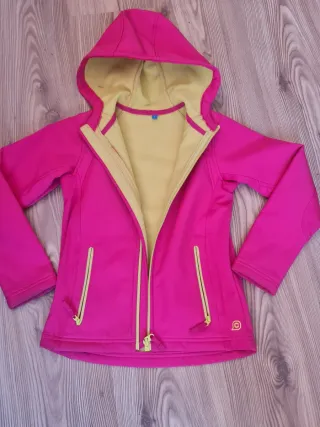 Giacca termica con cappuccio, ideale per le giornate più fresche. - Colore fucsia brillante. - Interno in tessuto giallo. - Zip frontale. - Tasche laterali con zip. - Logo sul fondo.