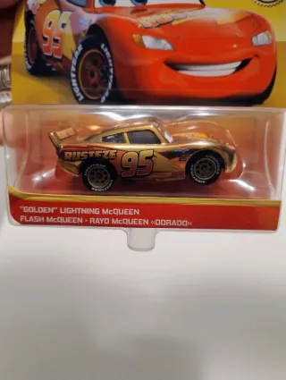 Modellino Golden di Saetta McQueen dalla serie Cars di Disney Pixar. - Edizione speciale Golden. - Realizzato in metallo. - Golden Lightning McQueen. - Flash McQueen - Rayo McQueen Dorado.