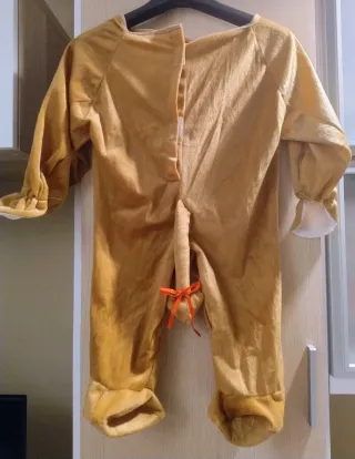 Morbido costume da leoncino per neonato, perfetto per le prime feste o per travestimenti. Manca il cappuccio. - Tessuto color ocra. - Maniche lunghe con polsini arricciati. - Piedi integrati.