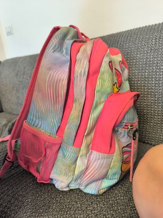 Bellissimo zaino per bambina, ideale per la scuola o le gite. - buono stato: unico punto rovinato è la retina porta borraccia, ma funziona comunque. - Colori vivaci e allegri. - Decorazioni con cuori, ciambella e arcobaleno. - Comodo e spazioso.