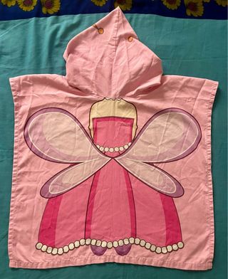 Morbido accappatoio a poncho in microfibra per bambina, con un'adorabile stampa di una principessa con ali di fata. - Colore: Rosa - Design: Principessa con corona e ali - Cappuccio integrato - cm 56 altezza - cm 60 larghezza