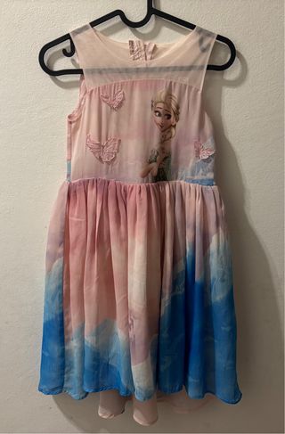 Grazioso vestito per bambina con stampa di Elsa di Frozen e dettagli a forma di farfalla. - Stampa di Elsa - Applicazioni a forma di farfalla - Gonna con sfumature rosa e blu