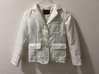 Giacca elegante per bambina, perfetta per occasioni speciali o per dare un tocco chic all'abbigliamento quotidiano. - Colore bianco brillante. - Chiusura con bottoni. - Due tasche applicate sul davanti.