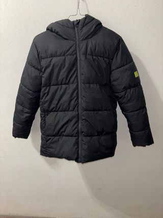 Giubbotto imbottito nero per bambini, perfetto per le giornate più fredde. taglia XL - Cappuccio integrato. - Chiusura con zip frontale. - Tasche laterali. - Dettaglio logo giallo sulla manica.