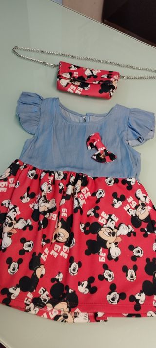 vestitino con topolino , taglia 3/4 anni completo di borsetta. effetto jeans.