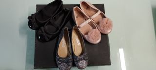 3 paia di ballerine ( nere/ argento/ rosa ) + un paio omaggio ( blu ) . taglia 27