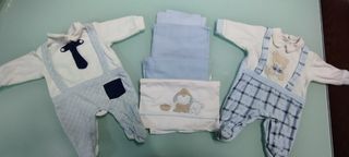 set composto da 2 tutine taglia 0/3 e un set completo di lenzuola .