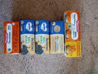 Lotto di omogeneizzati misti, ideali per lo svezzamento 27 conf da 2 vasetti 1 confezione da 3 vasetti Omogeneizzati Pollo Coniglio Tacchino Manzo Vitello Agnello Tutti confezionati Prima scadenza 07/26 nasello tutti gli altri a fine anno o al 2027