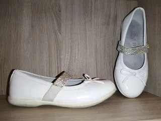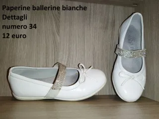 Paperine, ballerine bianche, Dettagli, numero 34. Indossate in una sola occasione, ottima vestibilità, molto comode e facili da indossare. Vendo per cambio numero. - Taglia: 34 - Colore: Bianco - Dettagli glitter sul cinturino - Fiocco frontale
