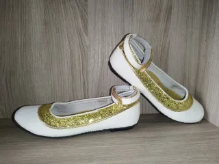 Paperine ballerine bianche e oro, Vincent, numero 34. Indossate in una sola occasione, ottima vestibilità. Molto comode e facili da indossare con la chiusura a strappo perfettamente funzionante. Vendo per cambio numero. - Marca: Vincent - Taglia: 34 - Colore: Bianco e oro - Prezzo: 11 euro