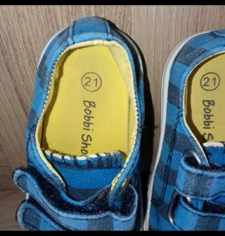 Scarpe da ginnastica con chiusura a strappo, Bobbi Shoes, numero 21. Indossate in una sola occasione, ottima vestibilità, molto comode e facili da indossare con la chiusura a strappo perfettamente funzionante. Vendo per cambio numero. - Marca: Bobbi Shoes - Taglia: 21 - Chiusura: a strappo - Design: a righe blu con mostriciattoli sul davanti