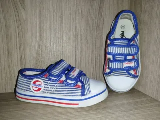 Sneakers, scarpe da ginnastica, Primigi, numero 25. Blu e bianche, molto comode e facili da indossare con la chiusura a strappo perfettamente funzionante. Ottima vestibilità. Vendo per cambio numero. - Fantasia a righe blu e bianche. - Chiusura con velcro. - Logo Primigi sul lato e sulla linguetta.