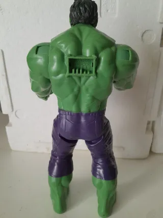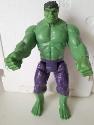 Action figure del personaggio Hulk, iconico eroe Marvel. - Colore verde brillante. - Pantaloncini viola. - Dettagli muscolosi.