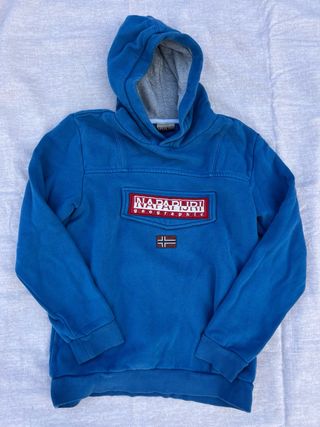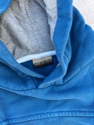 Felpa con cappuccio Napapijri originale, colore blu acceso con interno felpato e logo frontale in rilievo. Taglia 14 anni / 162 cm – perfetta per ragazzi/e o anche come fit oversize slim per adulti XS. Tessuto caldo, ideale per la stagione fredda. In ottime condizioni, usata pochissimo!