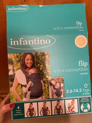 Marsupio porta neonato Infantino Flip 4-in-1 Convertible, ideale dalla nascita fino a 14.5 kg. - 4 posizioni di trasporto. - Ergonomico. - Adatto da 0+ mesi. - Peso supportato: 3.6-14.5 kg (8-32 lbs). Nuovo, mai utilizzato per regalo doppio.