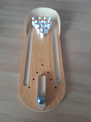 Gioco da tavolo in legno per bambini, perfetto per divertirsi in casa.Con piccolo difetto - Pista da bowling in legno con 10 birilli. - Include una palla metallica. - Design colorato e accattivante.