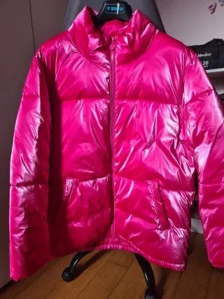 Giacca imbottita lucida color fucsia, ideale per la stagione fredda. - Collo alto - Chiusura con zip - Tasche laterali