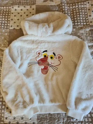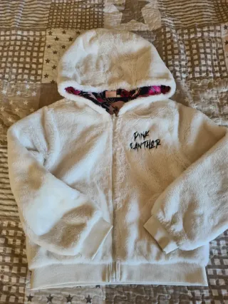 Morbida giacca in pile con cappuccio, perfetta per le giornate più fresche. Presenta una stampa floreale all'interno del cappuccio e la scritta Pink Panther sul petto. - Materiale: Pile - Taglia: 11-12 anni - Chiusura: Zip frontale - Dettagli: Cappuccio foderato, polsini elasticizzati