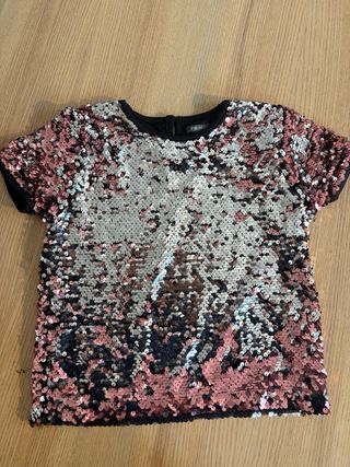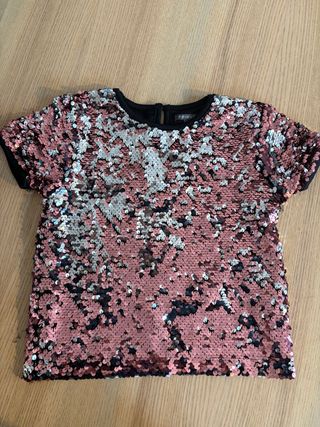 Maglietta con paillettes reversibili per bambina. Un capo scintillante e divertente, ideale per le feste. - Colore principale: rosa. - Dettagli in argento e nero. - Fodera interna.