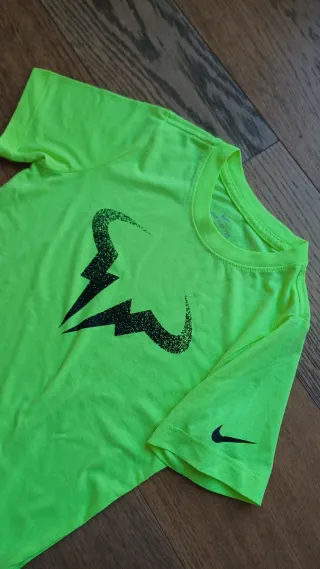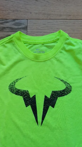 Vendo maglietta tecnica NIKE da bambino/a, ideale per il tennis, l'allenamento o lo sport. Il colore giallo fluorescente (verde acido) garantisce alta visibilità in campo. La maglia presenta la stampa del famoso logo Rafa Bull di Rafael Nadal. Taglia: S Bambino (128-137 cm) Condizioni: Ottime condizioni, senza strappi o macchie. Tessuto: Tessuto tecnico ( Nike Dri-FIT) ideale per l'attività sportiva. Un capo di marca e tecnico, pronto per la prossima partita! #Nike #NikeTennis #RafaNadal #MagliettaBambino #Fluo #128cm #AbbigliamentoSportivo #DriFit