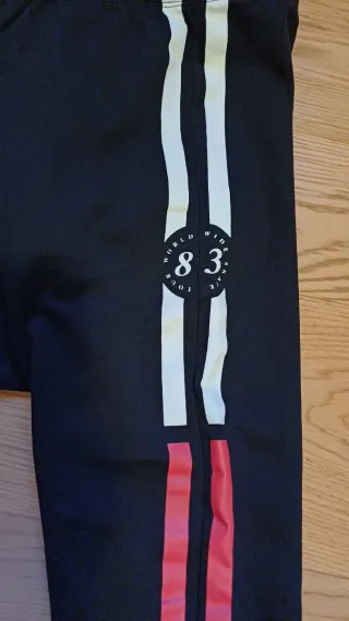 Vendo pantaloni tuta UNITED COLORS OF BENETTON da bambino/ragazzo, un capo sportivo e di tendenza. I pantaloni sono neri, con coulisse regolabile in vita (rossa) e presentano un dettaglio sportivo con bande laterali (bianche e rosse) e un logo circolare '83' sulla gamba. Marca: UNITED COLORS OF BENETTON Taglia Etichetta: XL / 10-11 Anni (150 cm) Colore: Nero con dettagli Rossi e Bianchi Condizioni: Ottime condizioni, usato pochissimo, senza segni di usura. Perfetti per un look casual, lo sport o il tempo libero! #Benetton #UnitedColorsOfBenetton #PantaloniTuta #150cm #11Anni #Nero #BandeLaterali #OttimeCondizioni