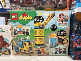 Set LEGO Duplo dedicato al cantiere, numero 10932. Include veicoli e personaggi per il gioco. - Gru con palla da demolizione. - Camion. - Personaggi. - Uccellino.