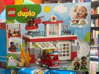 Set LEGO Duplo 10970, la caserma dei pompieri con veicoli e personaggi. - Include una caserma con scivolo, un camion dei pompieri con luci e suoni, e un elicottero. - Contiene 3 personaggi LEGO Duplo. - Ideale per sviluppare abilità motorie fini e sociali. - Adatto dai 2 anni in su.
