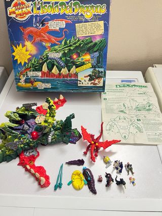 Set completo del gioco L'Isola Del Dragone di Mighty Max, con scatola e istruzioni. possibilità di vendere anche senza scatola - Include il playset principale. con luci funzionanti - Scatola originale inclusa. - Foglio istruzioni per il montaggio.
