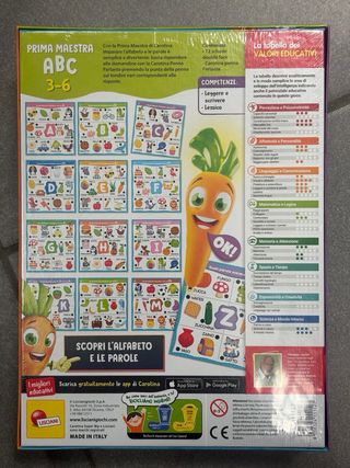 Gioco educativo Prima Maestra ABC di Lisciani, ideale per i più piccoli. - Adatto a bambini dai 3 ai 6 anni. - Include carte illustrate per imparare l'alfabeto. - Testato da genitori e insegnanti.