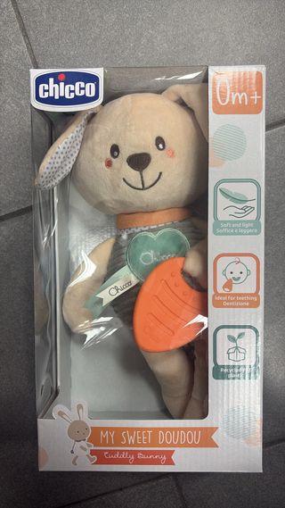 Peluche Chicco My Sweet Doudou, modello Cuddly Bunny. Morbido e leggero, ideale per la dentizione. - Materiale: plastica riciclata. - Età consigliata: 0+ mesi. - Design a forma di coniglietto.