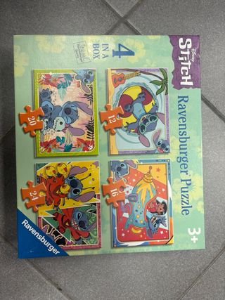 Set di 4 puzzle Ravensburger con Stitch. - Illustrazioni colorate di Stitch e amici. - Include 4 puzzle diversi. - Qualità Ravensburger.