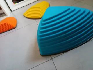 Set di 5 sassi colorati per la psicomotricità. Perfetti per creare percorsi e stimolare il movimento. - Colori inclusi: rosso, arancione, giallo, verde, blu. - Design a forma di triangolo con rilievi. - Base antiscivolo. Vendo bellissimi moduli per gioco/psicomotricità riproducenti i sassi di fiume. Nuovissimi e usati poche volte. Misure del modulo più grande 45(base)x30. Per motivi di ingombro selezionare BRT per la spedizione.