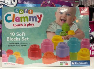 Set di 10 blocchi morbidi Clemmy di Clementoni, ideali per stimolare lo sviluppo sensoriale dei più piccoli. - Colori vivaci e forme adatte alle mani dei bambini. - Materiale morbido e sicuro. - Made in Italy.