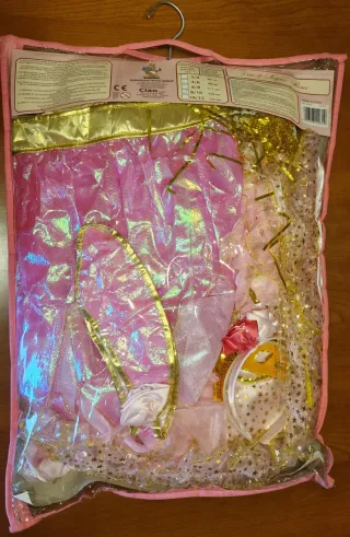 Bellissimo vestito da principessa rosa, perfetto per il carnevale o le feste a tema. Questo costume è un 3 in 1, permettendo diverse combinazioni. - Adatto per bambine di età compresa tra 8 e 10 anni. - Include diversi componenti per creare più look. - Design ispirato alle principesse con dettagli scintillanti.