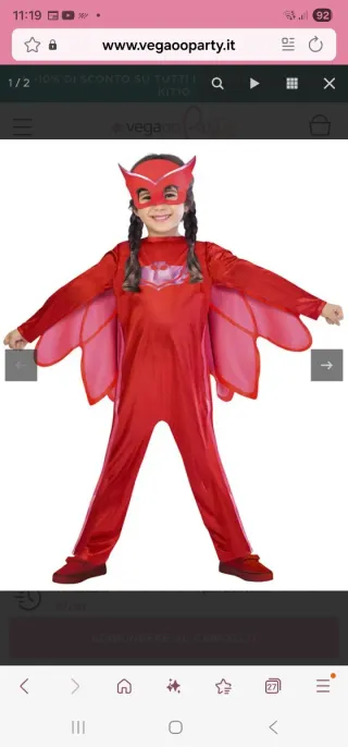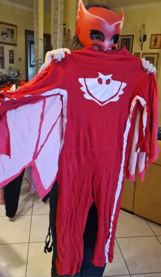 Vestito da Gufetta del cartone animato Super Pigiamini, adatto per feste in maschera o carnevale. La taglia è indicata per bambini dai 6 agli 8 anni. - Costume completo da Gufetta (il vestito realizzato a mano da sarta) - Maschera inclusa. - Ali applicate sul retro.