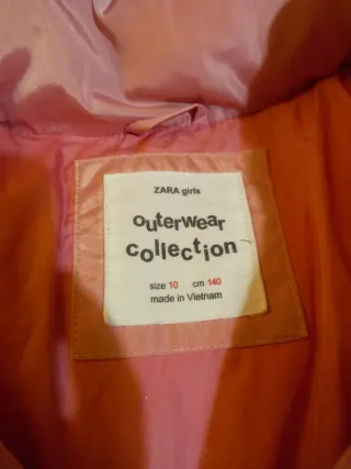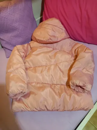 Caldo piumino per bambina, perfetto per le giornate più fredde. Il colore rosa lo rende allegro e vivace. - Tessuto lucido e imbottito. - Cappuccio integrato. - Polsini elasticizzati. Manca una borchietta ad una tasca e presenta dei leggeri segni di penna come da foto