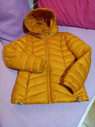 Piumino imbottito per bambina, colore giallo vivace. Perfetto per le giornate più fresche. - Cappuccio integrato. - Chiusura con zip frontale. - Fondo con cordino regolabile. Leggero alone vicino alla lampo come da foto