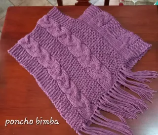 Poncho bambina viola con trecce