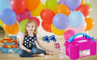 Macchina elettrica per gonfiare palloncini, ideale per feste ed eventi. - Colore: rosa e blu. - Design compatto e maneggevole. - Include accessori per facilitare il gonfiaggio.