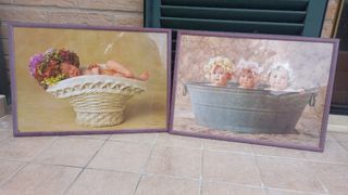 quadri- stampe neonati fotografati da Anne Geddes, cornice in legno color lilla, vendita anche di un singolo