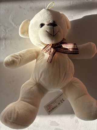 Orsetto di peluche, morbido e mai usato. Perfetto per un regalo o per aggiungere un tocco di dolcezza alla tua collezione. - Colore: crema - Materiale: 100% poliestere - Età consigliata: 0+ - Certificazione CE Non presenta segni di usura. Spedizione 24/48 ore