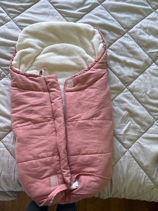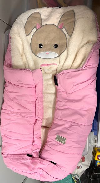 Sacco per ovetto Moovo, ideale per tenere al caldo il tuo bambino. - Colore rosa. - Interno foderato in morbido tessuto. - Chiusura con zip centrale.