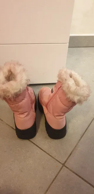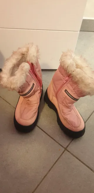 Stivali da neve rosa n°33 con fodera in pelliccia sintetica e zip laterale. Suola in gomma antiscivolo. In ottime condizioni!