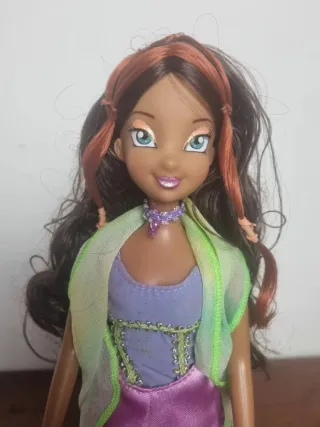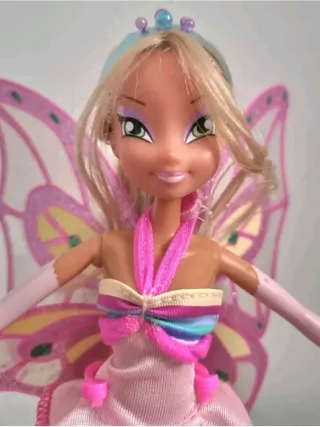 BAMBOLA WINX FLORA ENCHANTIX - Giochi Preziosi Bambola in ottime condizioni estetiche generali per quanto riguarda trucco, corpo e capelli (treccine e acconciatura sistemate), può presentare lievi segni di gioco, non so se il meccanismo funziona e la cedo non funzionante, ali in buono stato con qualche parte del colore mancante in alcuni punti, vestito con segni di gioco e sul davanti manca il fermaglio con il velo, come da foto. Piedistalli non incluso.