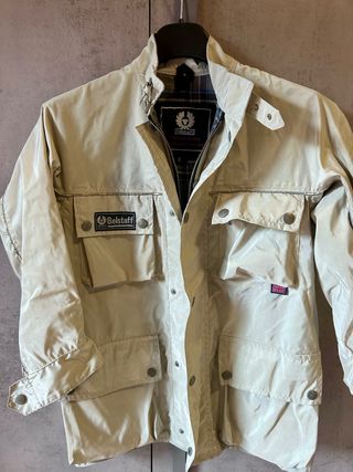 Giacca a vento Belstaff in colore beige, perfetta per ogni occasione. - Logo Belstaff sul petto. - Tasche frontali con bottoni. - Dettaglio bandiera Union Jack. - Fodera a quadri. Difetti come da foto