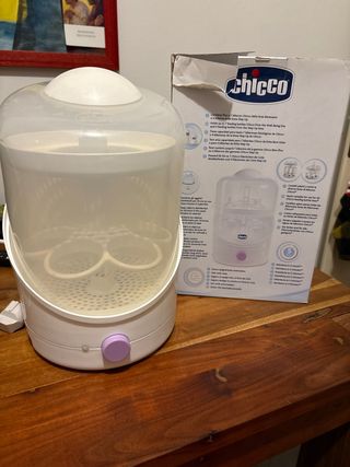 Sterilizzatore per biberon Chicco, linea Step Up. - Contiene fino a 7 biberon. - Capacità per 4 biberon della linea Step Up. - Mantiene gli oggetti sterilizzati per 24 ore se il coperchio resta chiuso. - Spegnimento automatico.