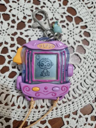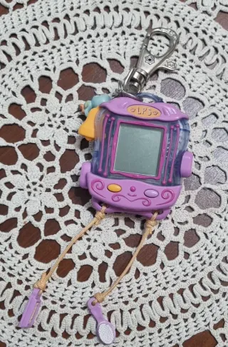 Gioco vintage retrò Littlest Pet Shop Tamagotchi LPS, animale domestico virtuale, pappagallo viola, portachiavi Hasbro, uccello domestico digitale perfettamente funzionante.
